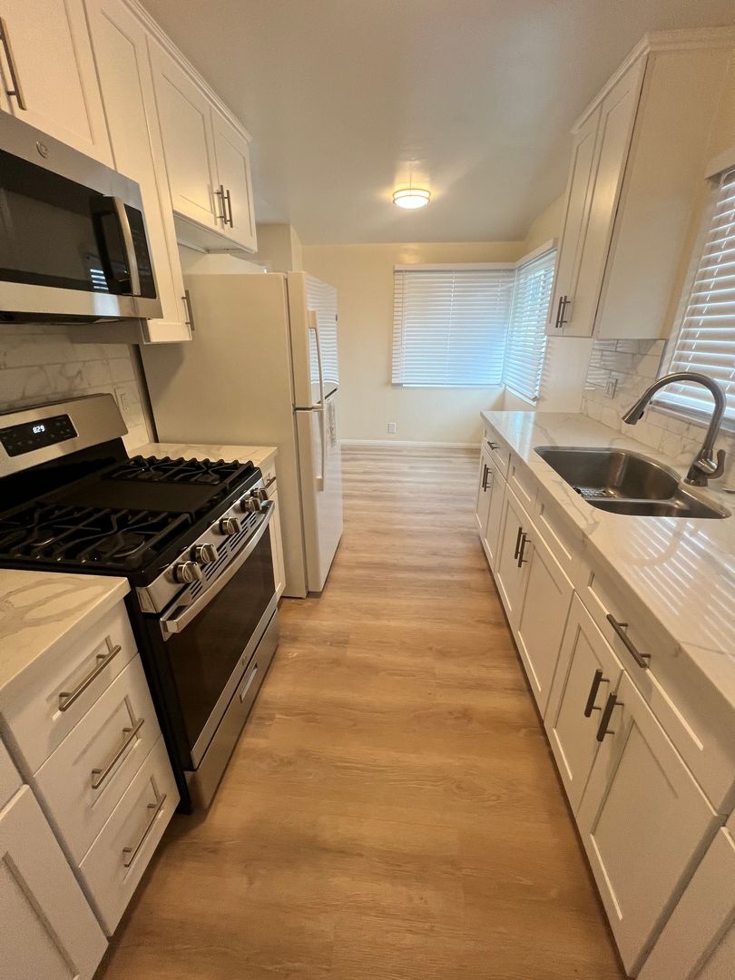 Beautifully remodeled upstairs apartment in central Oxnard, close to shopping and freeways. Fresh paint, newer wood like vinyl plank flooring, newly updated kitchen, and remodeled bathroom.