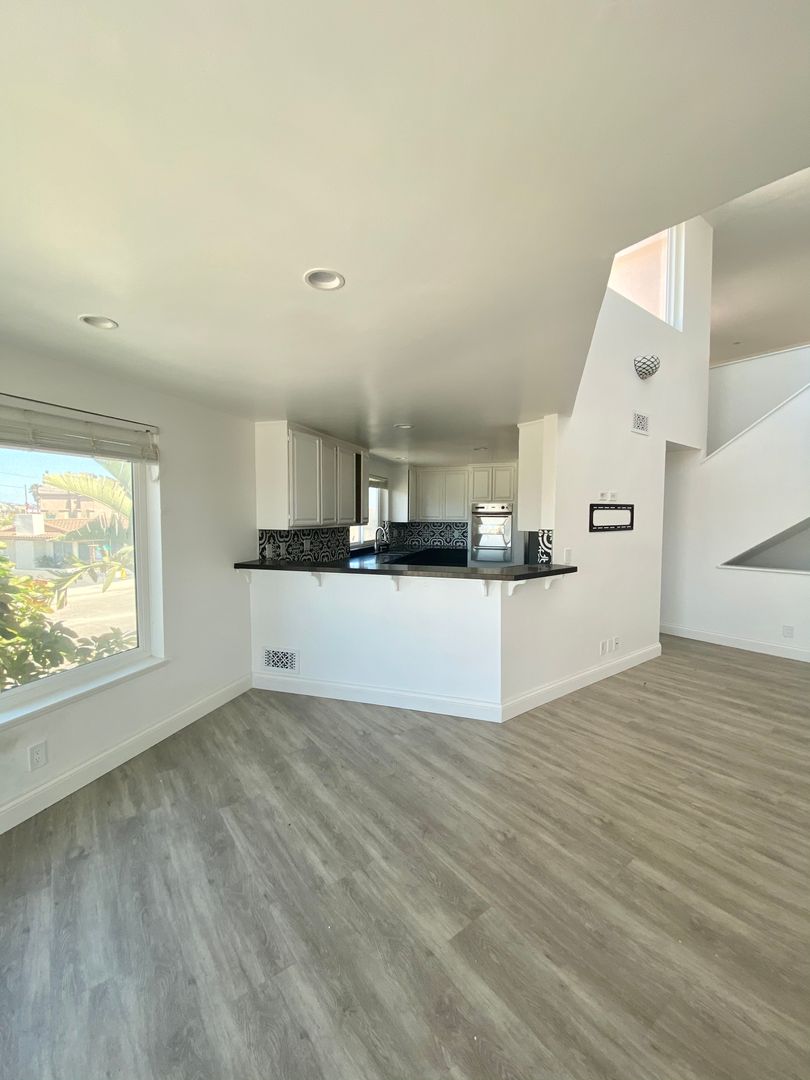 Recently remodeled portion of duplex with 3 bedrooms + loft in desirable beach community of Silver Strand. Two bedrooms on first level, one bedroom with access to small yard. Master bedroom and kitchen located on second floor, open concept to living and dining with access to balcony. Loft/office space on third floor with balcony access and ocean views. Walking distance from beach.